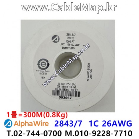 AlphaWire 2843/7, White 1C 26AWG 알파와이어 300미터 > Hook-Up Wire| 품명 | AlphaWire 2843/7 알파와이어 한국총판 케이블맵(주) ( BELDEN 한국총판 케이블툴(주) ) |