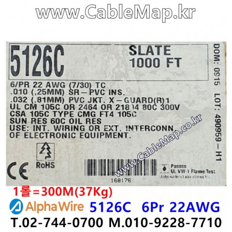 AlphaWire 5126C 6PR 22 AWG XTRAGUARD(R) 1 SHIELDED (UL) TYPE CM 105C OR AWM 2464 80C 300V OR AWM 21894 105C 300V SUN RES 60C OIL VW-1, CSA 105C TYPE CMG FT4 CE ROHS