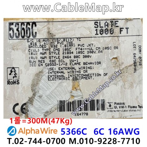 AlphaWire 5366C, Slate 6C 16AWG 알파와이어 300미터 > Xtra-Guard| 품명 | 상품페이지 참고 |