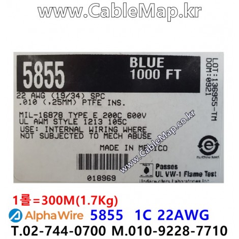 AlphaWire 5855, Blue 1C 22AWG 알파와이어 300미터