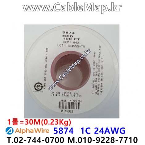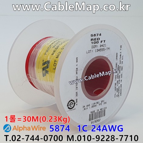 AlphaWire 5874, Red 1C 24AWG 알파와이어 30미터 요약정보 및 구매