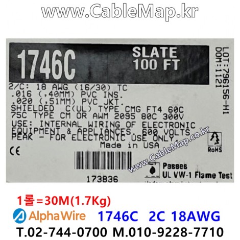 AlphaWire 1746C Slate 2C 18AWG 알파와이어 30미터 > 통신 및 제어| 품명 | AlphaWire 1746C 알파와이어 한국총판 케이블맵(주) ( BELDEN 한국총판 케이블툴(주) ) |