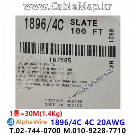 AlphaWire 1896/4C, Slate 4C 20AWG 알파와이어 30미터 > 통신 및 제어| 품명 | AlphaWire 1896/4C 알파와이어 한국총판 케이블맵(주) ( BELDEN 한국총판 케이블툴(주) ) |