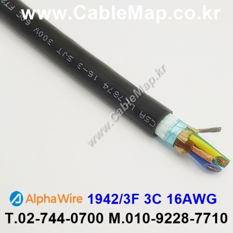 | 모델명 | Alpha Wire 1942/3F, Black 3C 16AWG, 300V 105℃, UL SJT, CSA SJT FT2 |