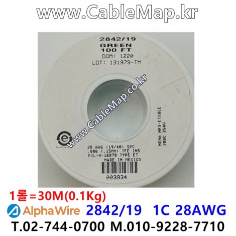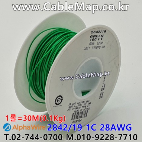 AlphaWire 2842/19, Green 1C 28AWG 알파와이어 30미터 > Hook-Up Wire| 품명 | AlphaWire 2842/19 알파와이어 한국총판 케이블맵(주) ( BELDEN 한국총판 케이블툴(주) ) |