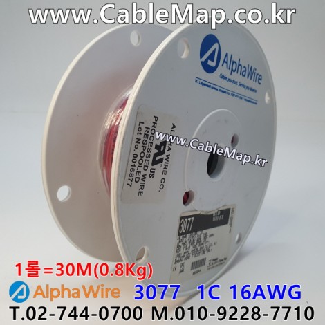 AlphaWire 3077, Red 1C 16AWG 알파와이어 30미터 > Hook-Up WireAlphaWire 카다로그 바로가기: www.cabletool.net