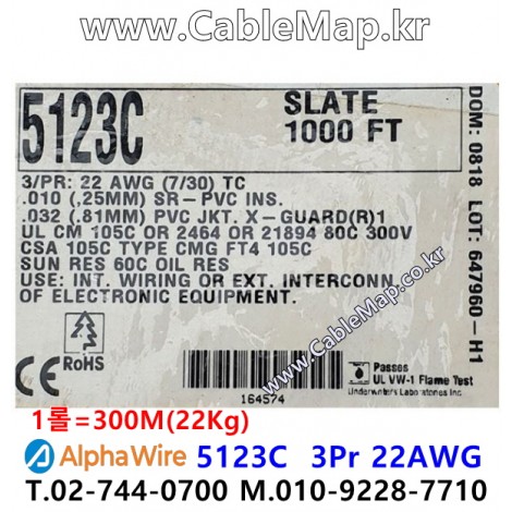 | 모델명 | AlphaWire 5123C, Slate 3Pr 22AWG, UL 2464, CM, VW-1, CSA CMG, FT4 |
