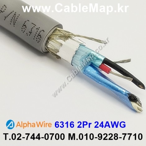 AlphaWire 6316 2PR 24 AWG SHIELDED 75C (UL) TYPE CM OR AWM 2493, CSA TYPE CMH FT1 CE ROHS