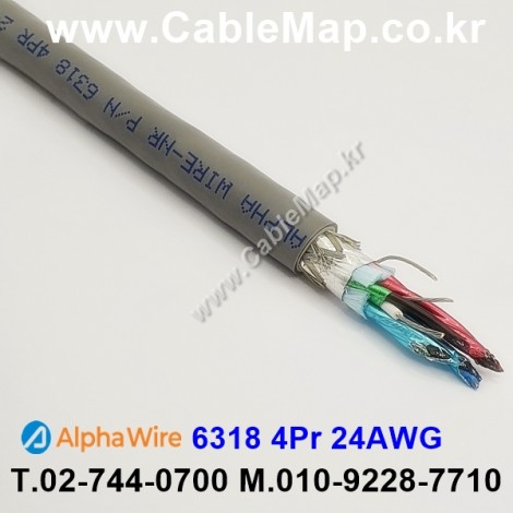 AlphaWire 6318 4PR 24 AWG SHIELDED 75C (UL) TYPE CM OR AWM 2493, CSA TYPE CMH FT1 CE ROHS