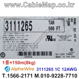 AlphaWire 3111265, Natural TAN 1C 12AWG 알파와이어 150미터