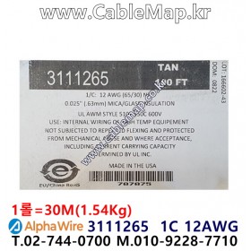 AlphaWire 3111265, Natural TAN 1C 12AWG 알파와이어 30미터